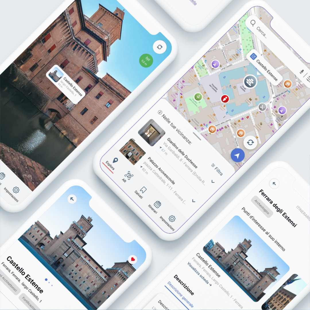 - App mobile con mappa, contenuti contestuali e funzionalità di realtà aumentata